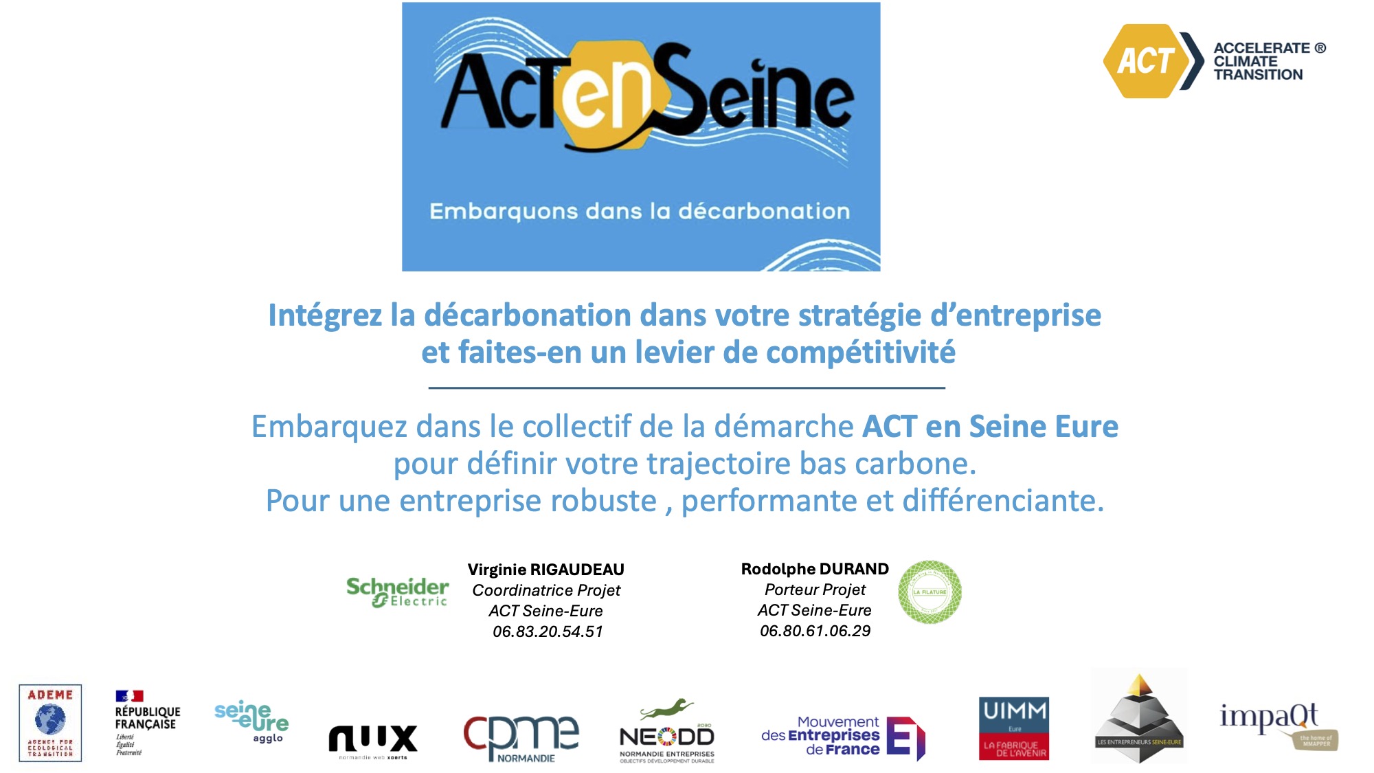 C’est sans hésitation et avec enthousiasme que nous avons répondu présent à l’appel de notre amie et partenaire de longue date Virginie Rigaudeau, Sustainable Transformation Project Leader chez Schneider Electric, pour apporter notre contribution à l’initiative ‘AcT’ en Seine-Eure’.